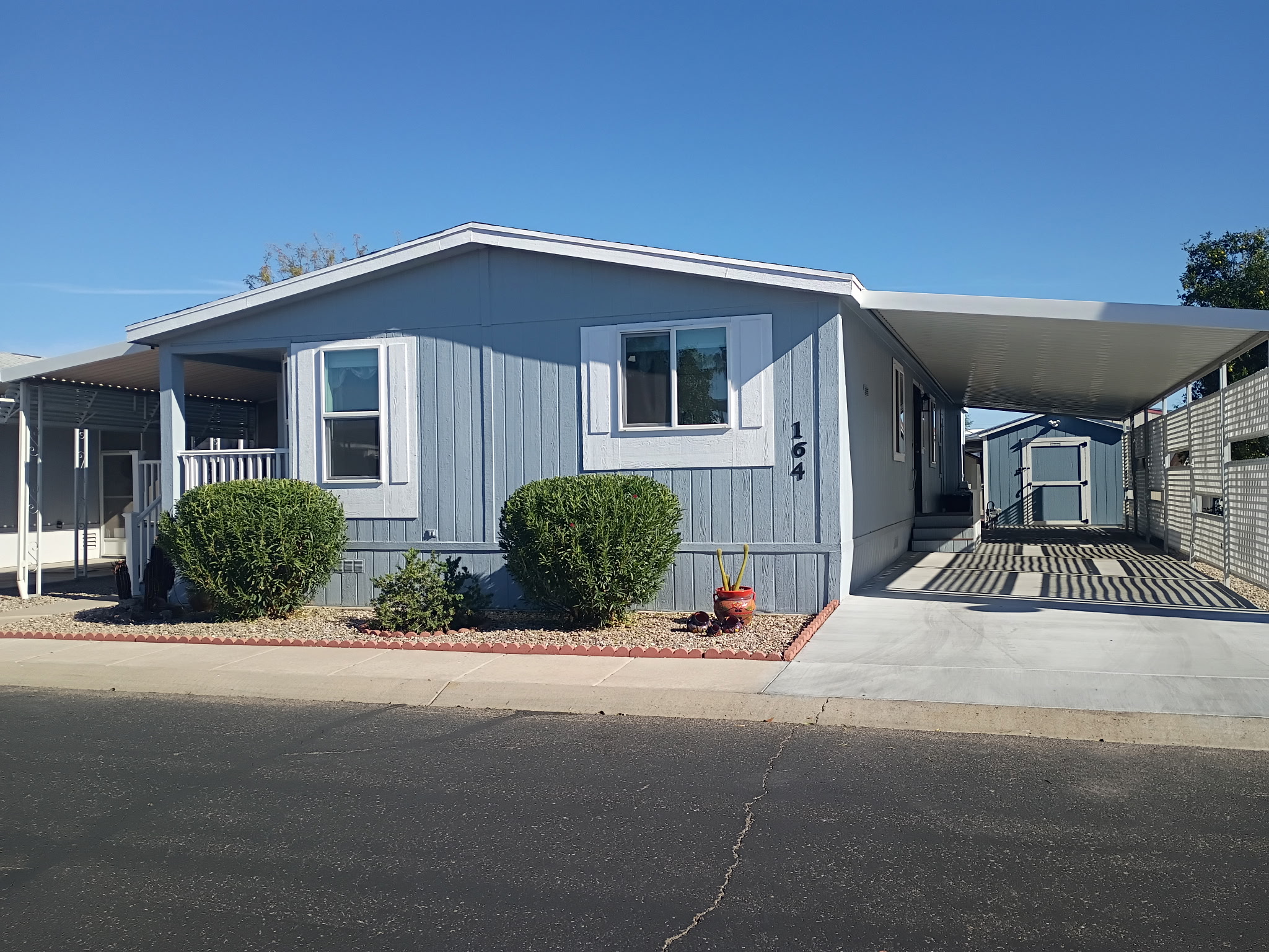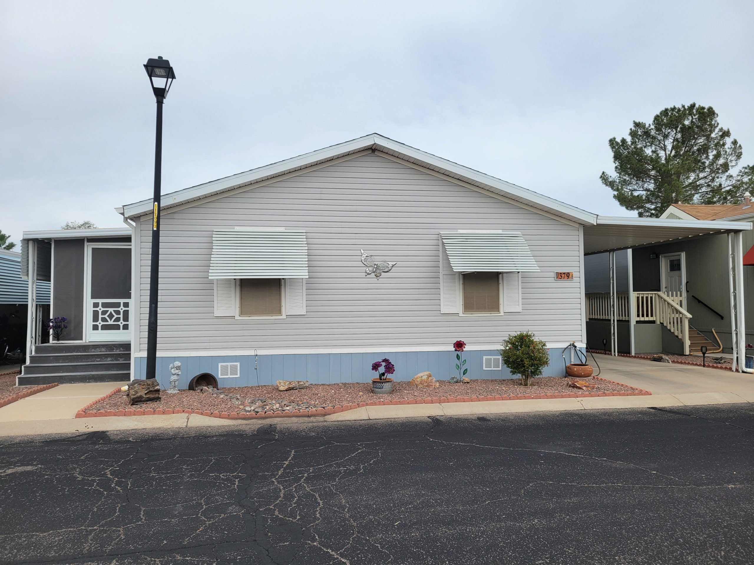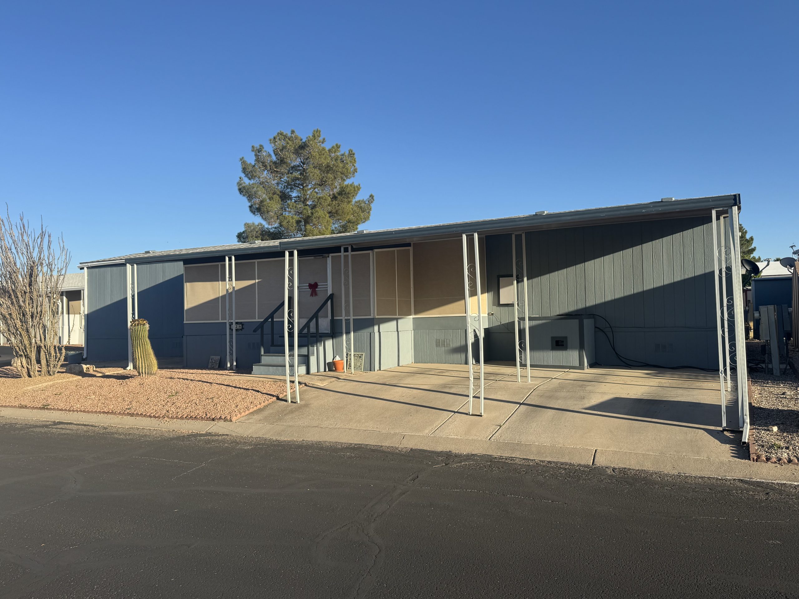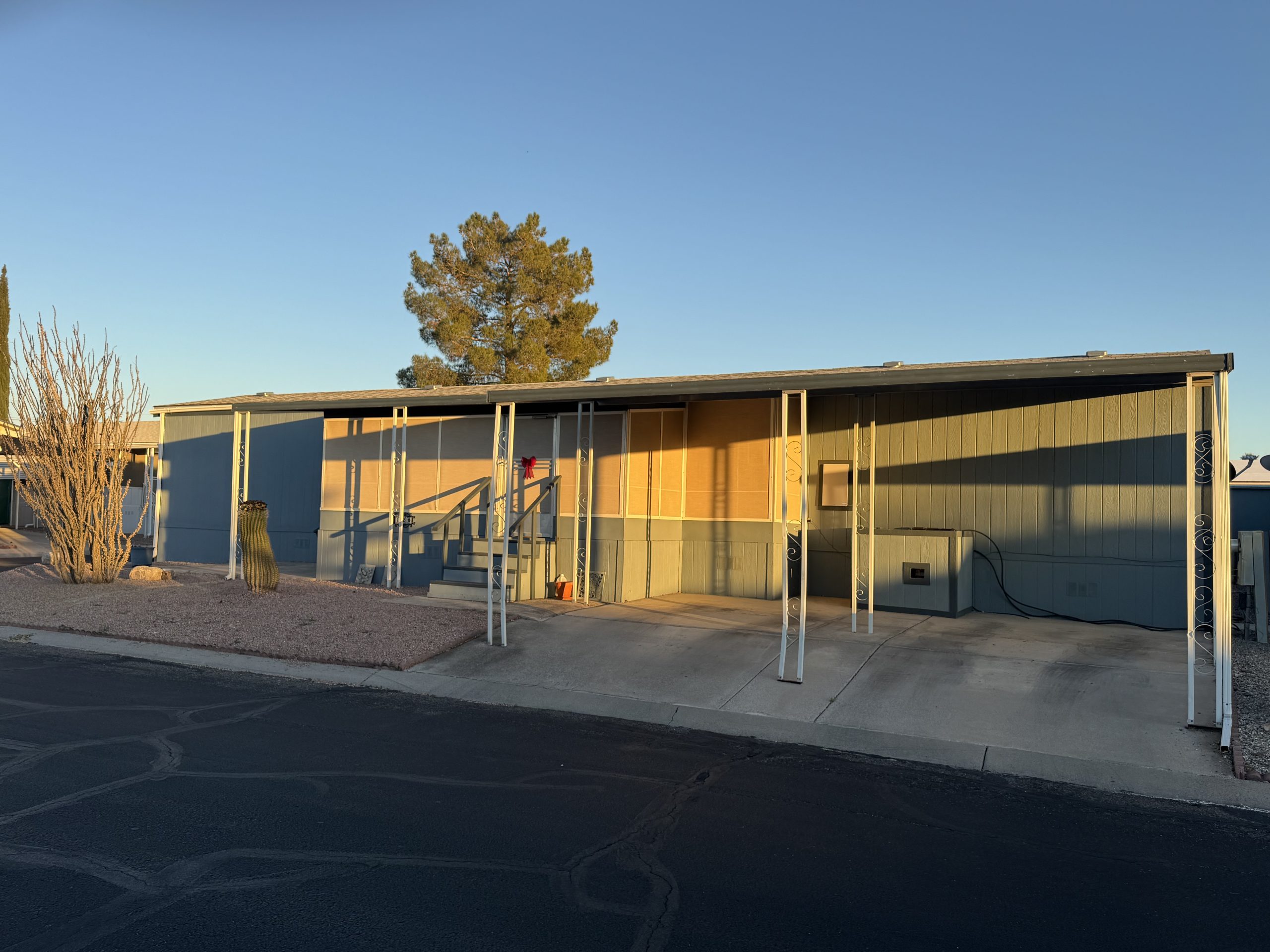 This stunning 2016 Cavco home offers 2 bed/ 2 baths split floor plan coming in at 1,456 sq. ft. and comes partially furnished. This beautifully kept home sits facing open space and is nice and private. As you enter, you walk into a spacious living and dining room concept with windowed walls that you can see through to the kitchen. It’s nice light and airy with the solar tubes in the kitchen and master bath. You can enjoy sitting on the screen in porch on the nice Tucson days. Under the screened in porch is plenty of storage as well as a stand-alone shed. Upgrades includes: all new wood skirting, wider carport with privacy slates. DON’T PASS UP THIS AMAZING NEW LISTING. Call to make an appointment for showing!!!!