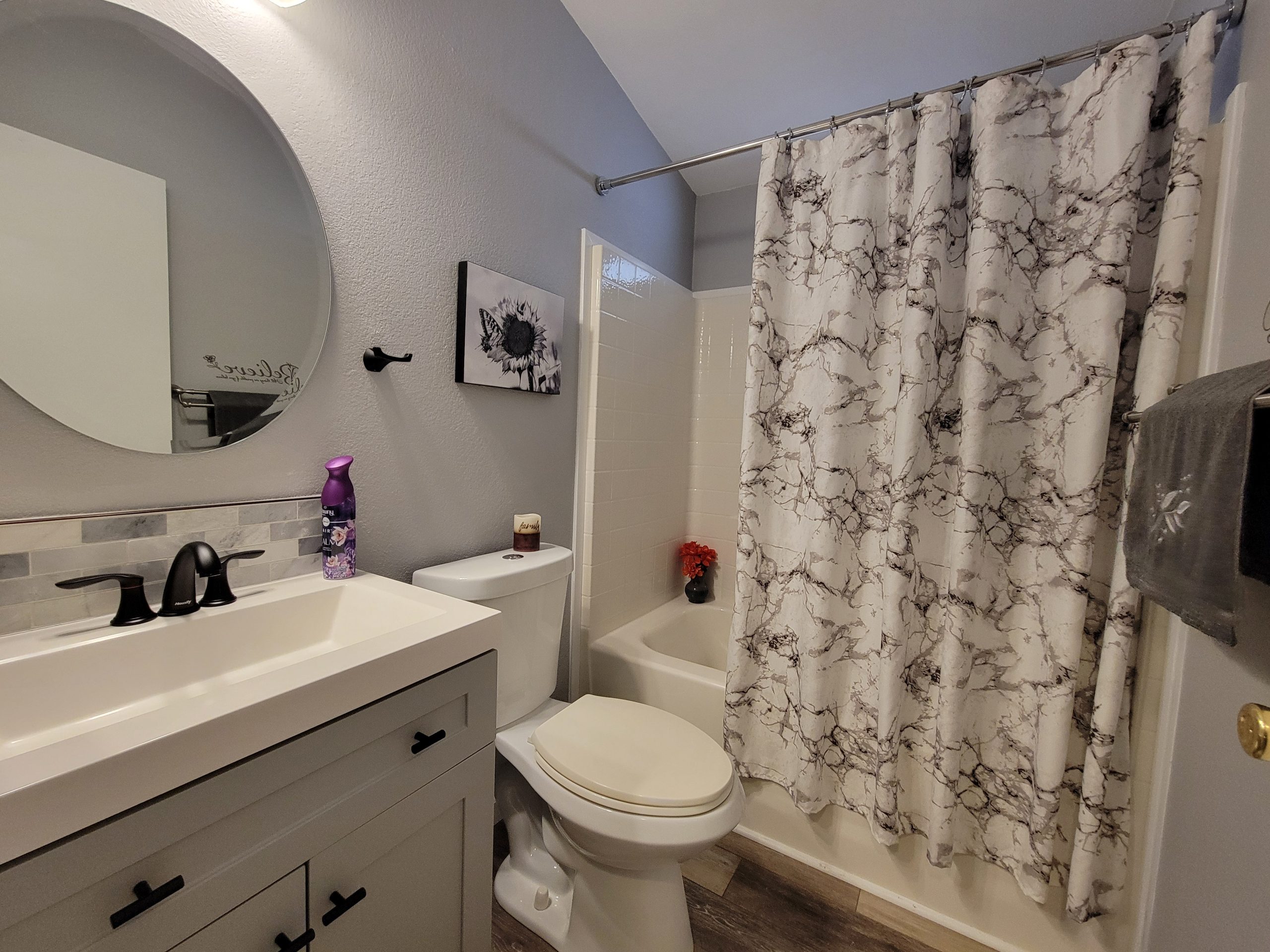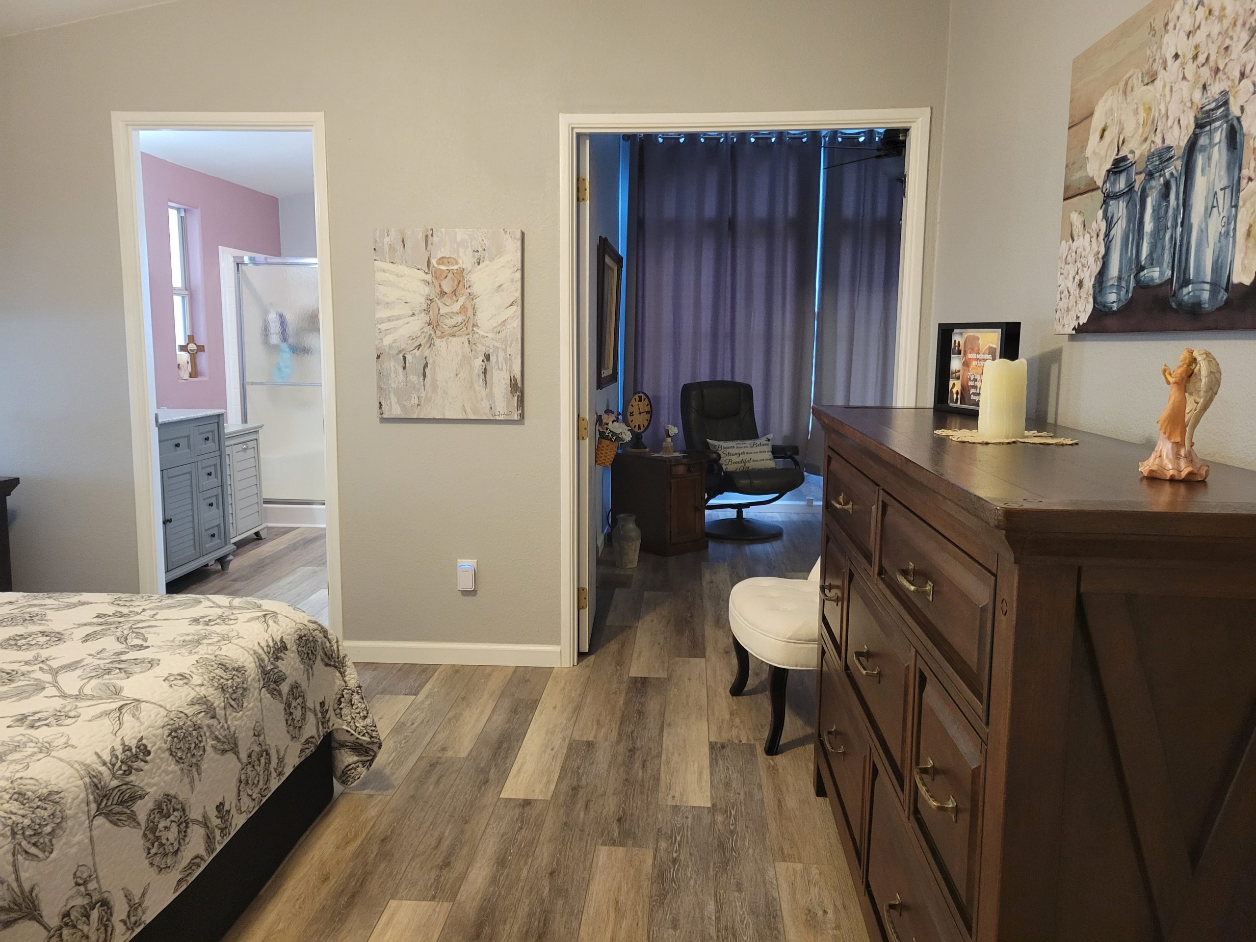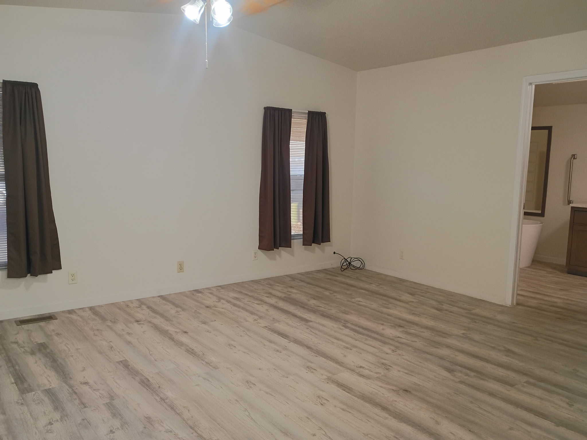 - Grey-toned waterproof vinyl planking throughout