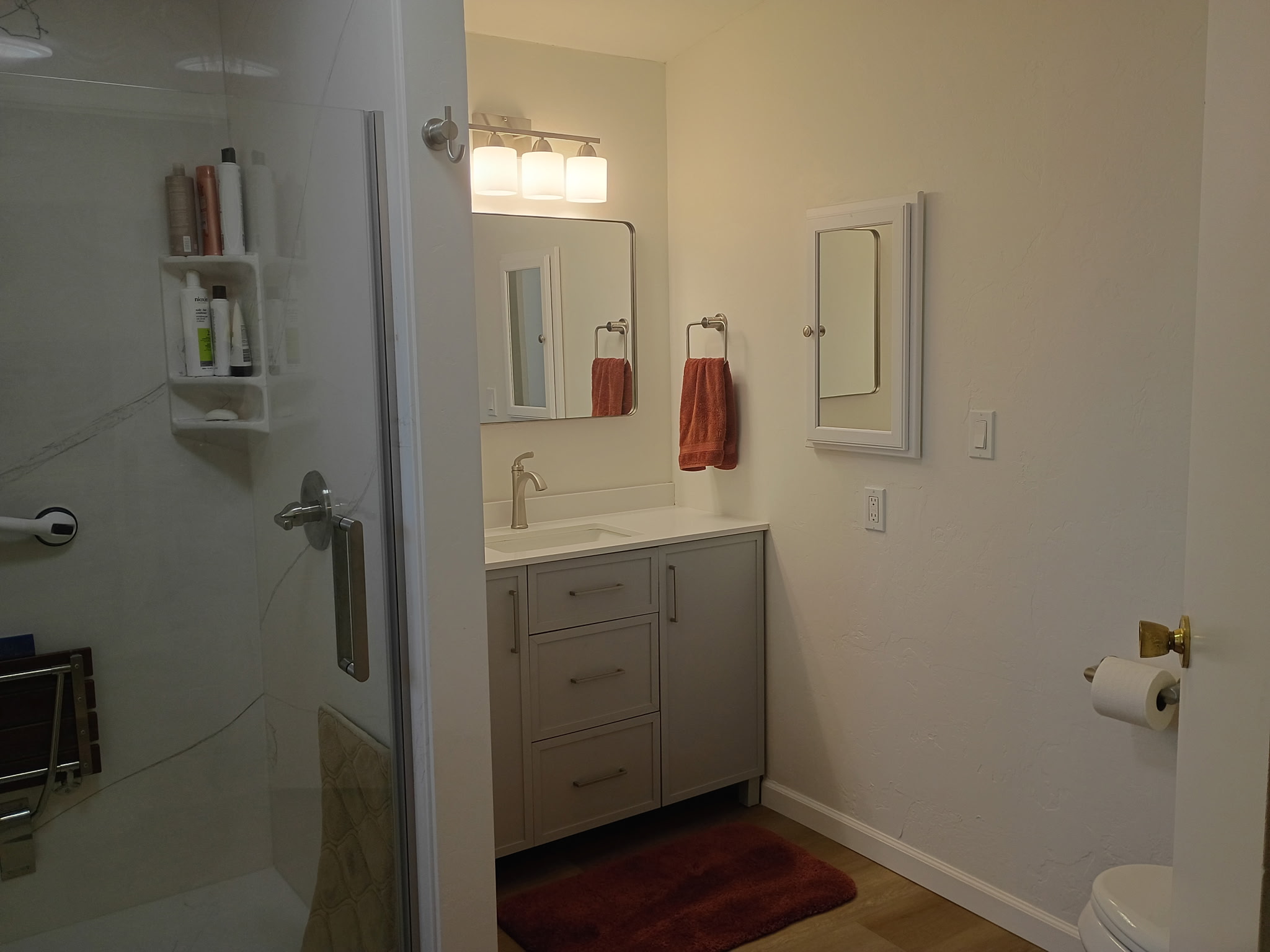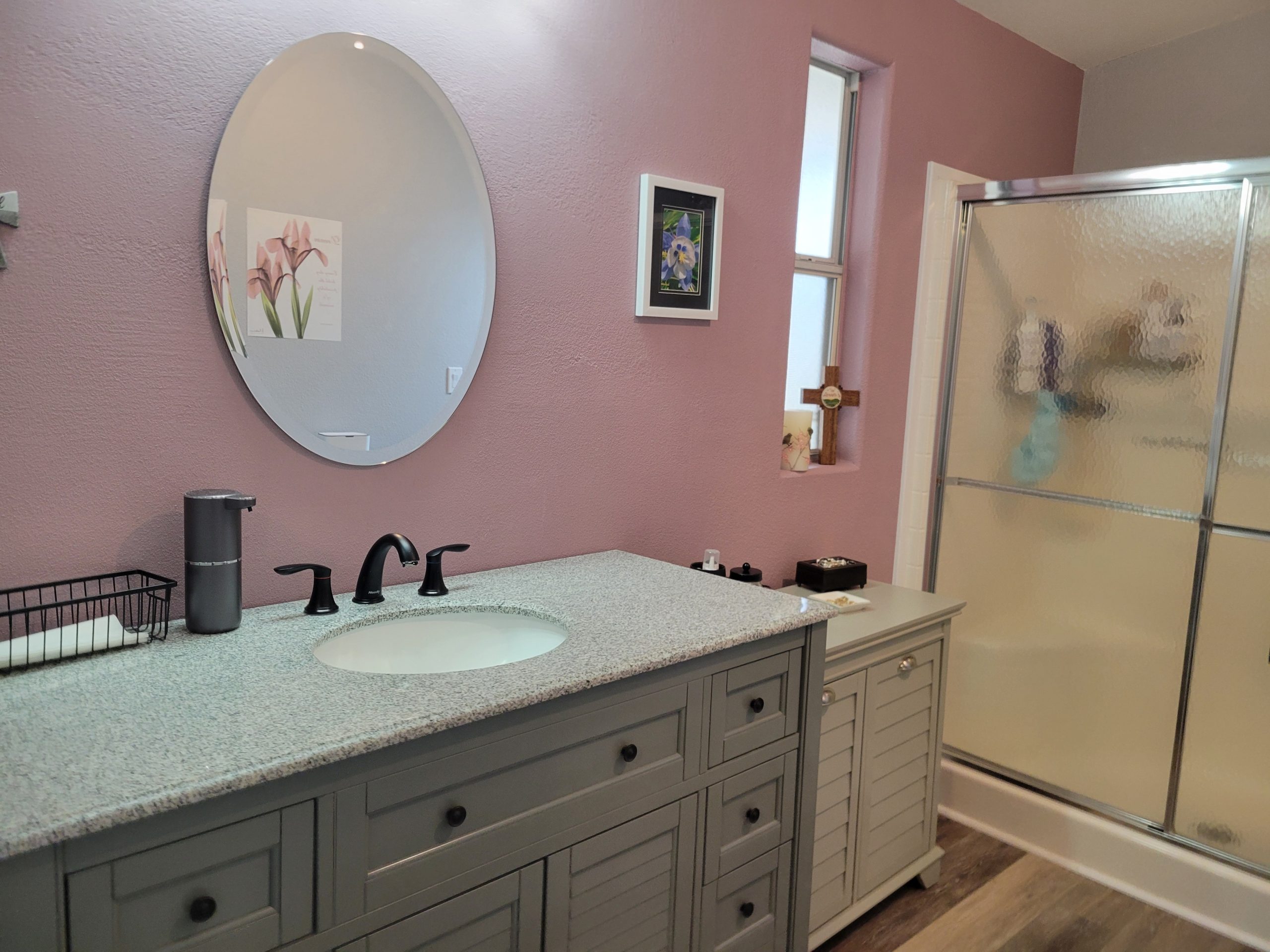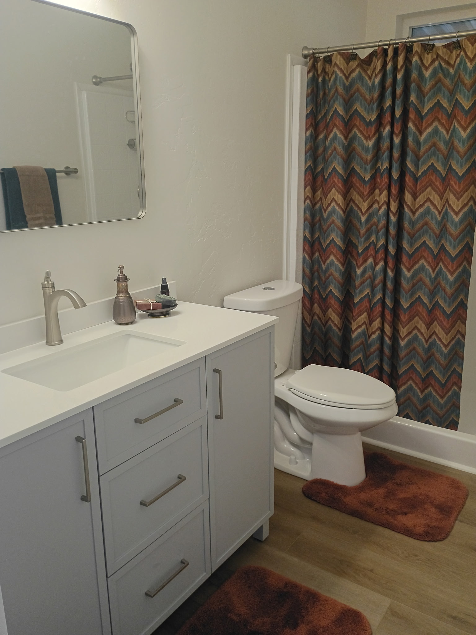- Grey-toned waterproof vinyl planking throughout